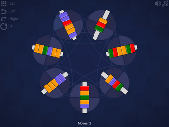 Ringsitaire is a simple puzzle game about sorting colored rings onto pegs. The goal is to move the rings around so that each stack of rings consists of only one color. The fewer moves you use, the more stars you'll get!